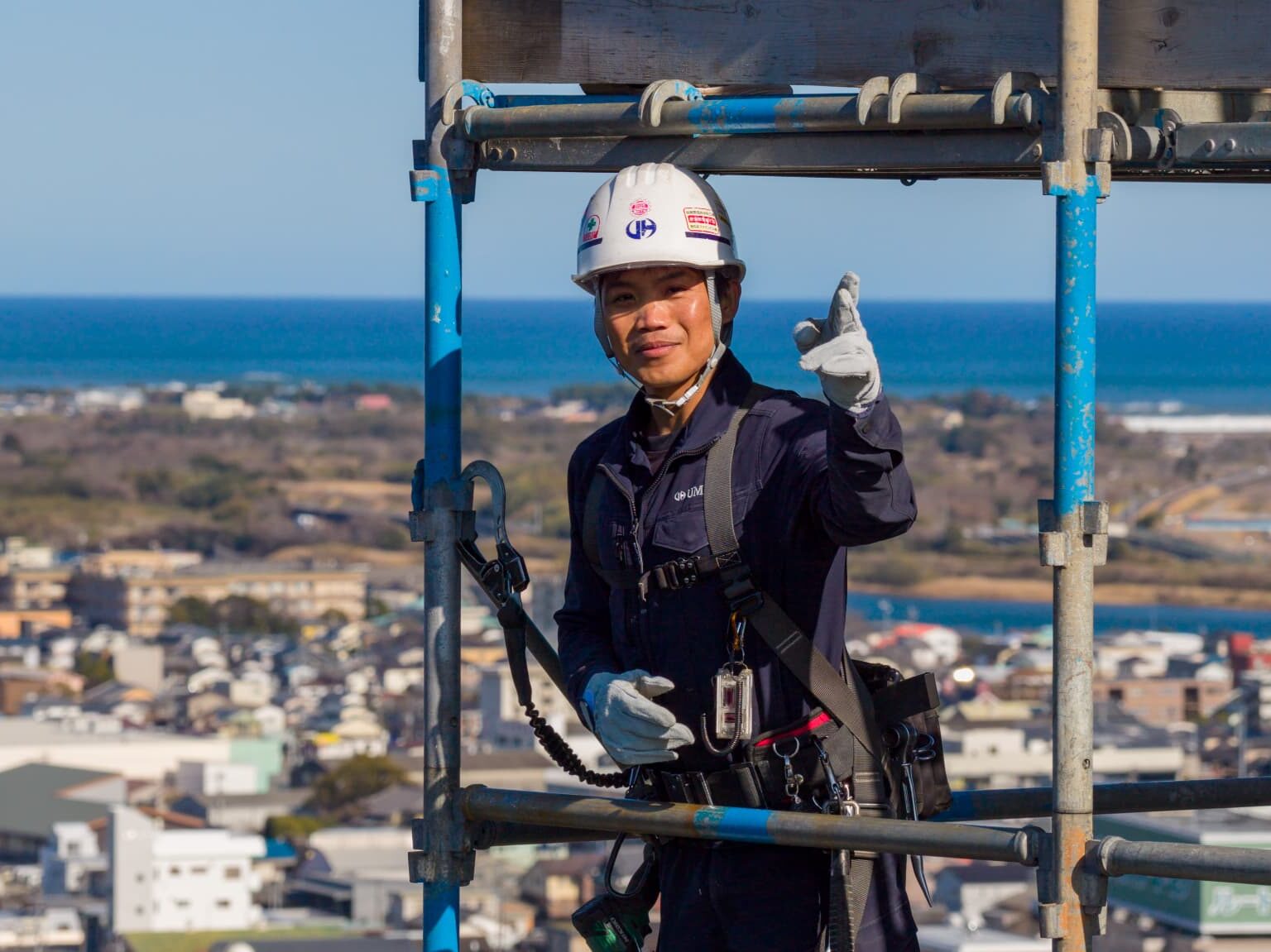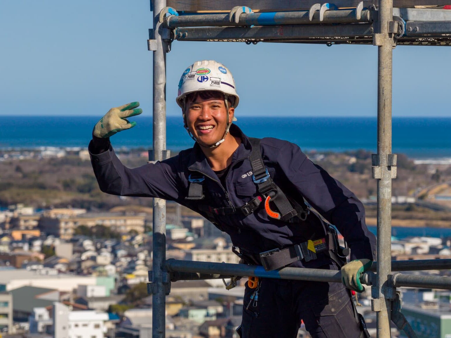 当社の魅力は、若い今だけではなくその先も長く働けることです。足場工事は体を使う仕事ですが、当社には熱絶縁工事の部門もあるため、年齢や経験に合わせて活躍の場を広げていけます。実際に、若い世代だけでなくベテランスタッフも活躍しており、70代で現役の方もいます。手に職をつけながら、自分に合った働き方で続けていける。そんな安心感があるからこそ、将来を見据えて働きたい方にもぴったりの職場です。